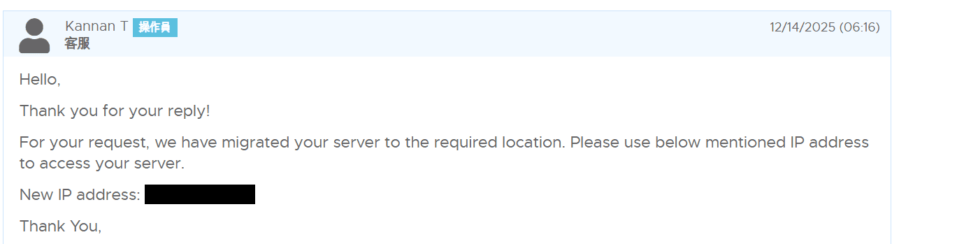 Hello I want to migrate my hosting server room to [这里写你的机房位置]