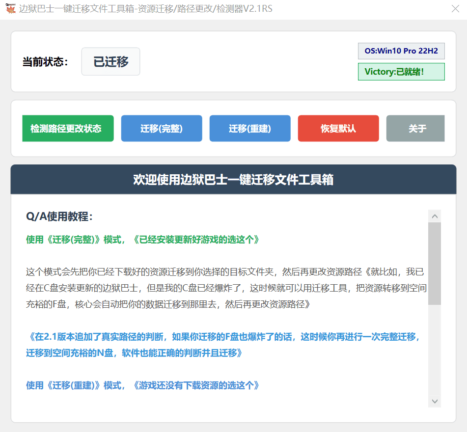 名称:边狱巴士一键迁移文件工具箱-资源迁移/路径更改/检测器/